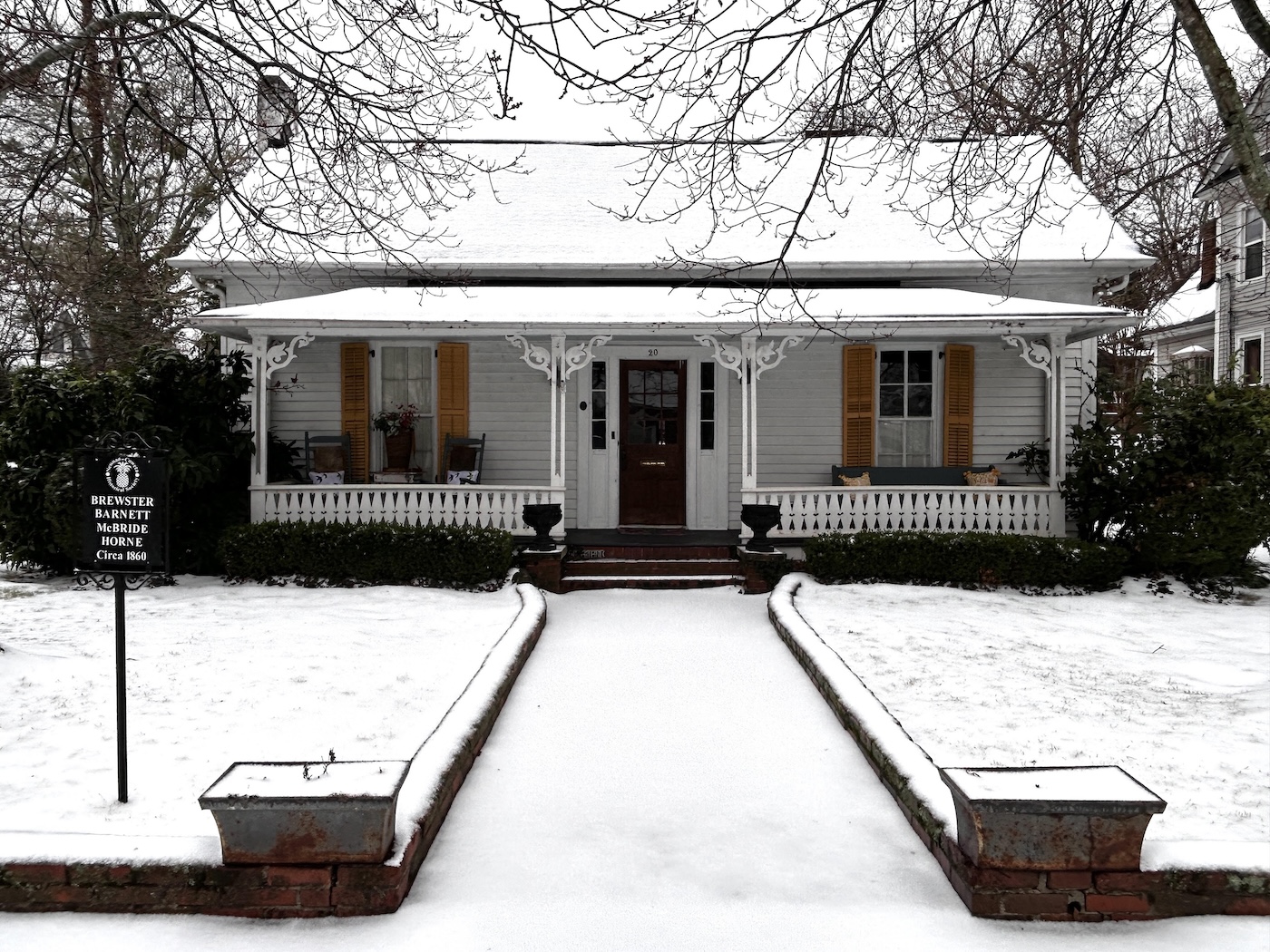 Nestled under mature trees and full of period charm, the Brewster Barnett McBride Home was built in 1868 by Col. Brewster. Originally a modest center-hall cottage with three or four rooms, it has since evolved to meet the needs of modern living—all while preserving its historic integrity. The home’s most eye-catching feature is its inviting Victorian front porch, adorned with flat-cut gingerbread brackets and pierce-cut palings featuring a heart motif. According to local tradition, an Amish carpenter added these Victorian details and left one bracket intentionally imperfect—a nod to the belief that only God can create perfection. Step inside to discover original wide doors, floors, and molding, as well as four fireplaces—three coal-burning fireplaces (2 rooms share a chimney), the front bedroom and a wood-burning fireplace in the kitchen. Since 2017, the Horne's have renovated the hallway bathroom and updated the kitchen, preserving the original cabinetry while integrating modern appliances and finishes for everyday use. A practicing artist and collector, Jenni has infused the home with creative charm throughout—including a vibrant carport mural, visible as you exit the tour. This beloved home is a testament to timeless design, craftsmanship, and the power of thoughtful stewardship across generations.