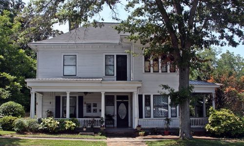 This Swiss cottage was built in 1870 by The Cole Manufacturing Company for W. A. Mitchell. He owned this lot as well as the large house next-door, to the right of the property. During Mr. Mitchell's lifetime, it was rented to the Methodist pastor for his family. After his death around 1900, it was sold as a private residence. When it was first built, the house consisted of only four rooms and a small kitchen. There was an addition in 1890, which added the hall bath and main bedroom with ensuite bathroom. The rest was added in the 1930s, at which time they installed the current oak floor, covering up the original wide plank pine to seamlessly blend with the addition. In the 1980s the Erhenhard family moved the kitchen from the very back of the house (laundry room) to where it is still today.This structural architecture of 2" thick heart pine walls with crossed timber bracing is what makes it unique. The interior "stick style" bracing is reminiscent of medieval architecture. As far as we know, this is the only house of its type in Coweta County.The current owners are Melissa and Rob DePaola. They have lived here with their twin boys since the spring of 2020. Although the house has had several different owners over the years, there is a common theme with some of them. Melissa is an artist/designer and Rob is a musician. This was also true of Shelley Laurin and Martin Rudy who owned the house from around 1990 to 2012. At that time, the TV room was "the music room". Just like Melissa does today, Shelley also had her artwork displayed throughout the house. Melissa really wants it to feel like a warm hug when you walk through the door. Her whimsical art aesthetic ties in with the Christmas decor, which is made up of antique finds and hand-me-downs.Since purchasing the house in 2020, Melissa and Rob have done an extensive amount of cosmetic remodeling. They bought it from the Verlander family who lived here for 8 1/2 years with their 7 children. Both full bathrooms were in need of an overhaul. Melissa personally designed them. She meticulously handcrafted the intricate pattern on the floor of the ensuite shower, reminiscent of tile you might find in a house of this age. They recently added a secret hideaway for their two children in the attic. Rob, along with hired help, completed the transformation.Although there are always projects to do, this house has been loved and taken care of over the years, all while keeping so much of its historical charm!
